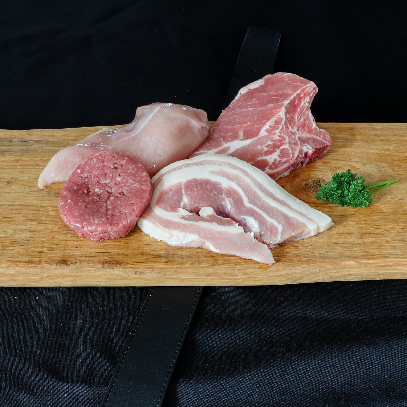 Pakket bestaande uit 1 runder tartaar, 1 speklap, 1 karbonade & 1 kipfilet